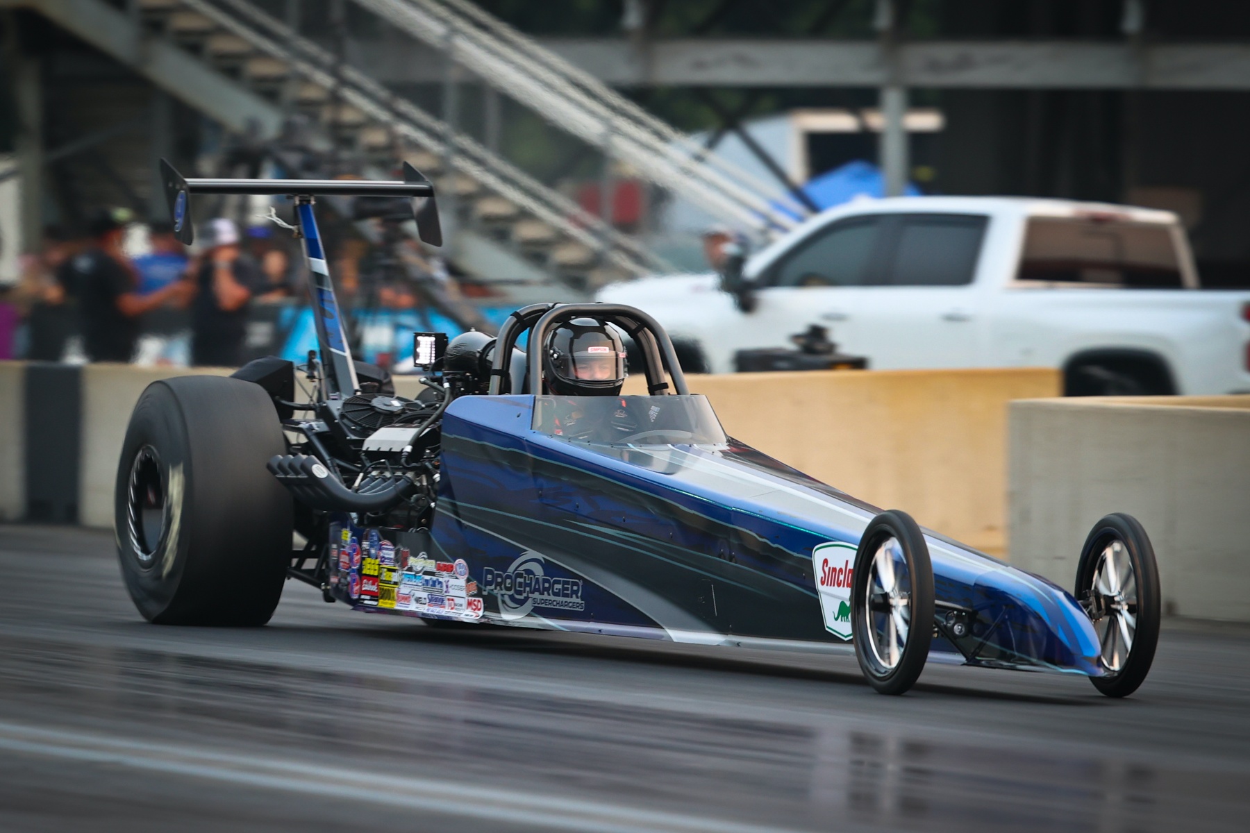 “Dustin [Hart] told me he was working on a centrifugal supercharger and he got it right,” Weatherford said. “We’re sitting here today in the winner’s circle with this thing. No. 1 qualifier. No problems, no issues with it. Harts Charger to the front. He did exactly what he said he’d do. We came here to prove a point. We’re not out, we’re not dead. We’re back. Now I know I can run with these guys. I can stay right there with them. That’s huge. It makes you as a driver drive better because you know you’ve got something that can win.”