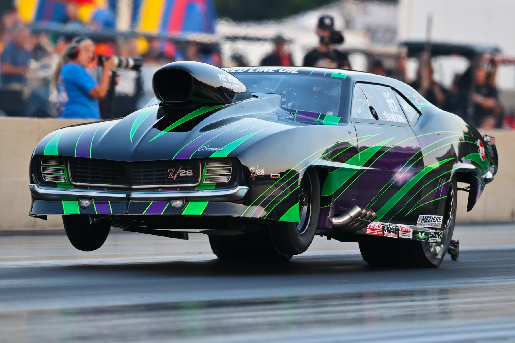 Denton, driver of the nitrous-fed, Musi-powered “Bonnie” ’69 Camaro Lizzy Musi tribute, qualified second and set low E.T. of the opening round with a 3.928 at 200.27 to beat Richard Reagan and his 3.962. Texan Adrian Herrera went red and lifted to a 4.32 while Denton sailed to a 3.932 at 196.94 when the two faced off in the second round. Improving upon his qualifying performance, Denton dipped back into the 3.80s in the semifinals with his 3.889 at 205.01 to knock out No. 3 qualifier Ron Green and his 3.982.