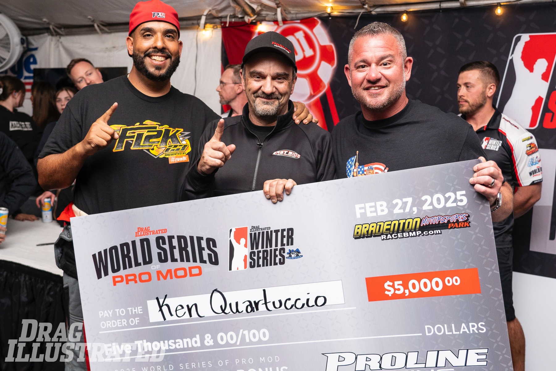 Quartuccio received a true champion’s welcome on the starting line. He was surrounded by fellow drivers, crew members, tuners, media members, officials, and sponsors offering congratulatory handshakes, hugs, and pats on the back. He was also surrounded by his family, including his wife, two daughters, son-in-law, a grandson, and brother-in-law.