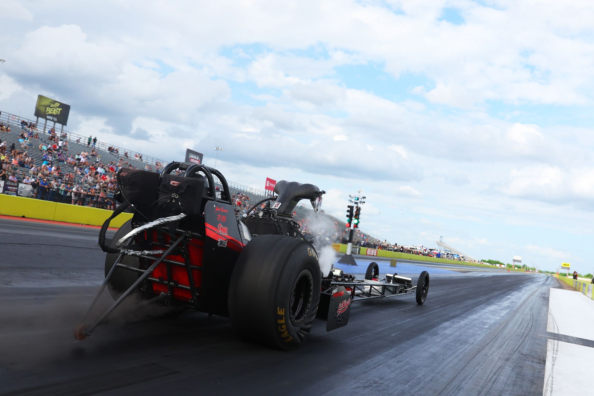 After two rounds of qualifying on Friday, Keith Zimmerer’s “Penny Pincher 2” funny car led the Rodak’s Custom Roasted Coffee ‘A’ Field into eliminations with a 3.59 at 210 mph. Mary Reep and Daniel Cottrell also claimed top qualifying positions in the Alkydigger ‘B’ Field and Wulff Pumps ‘C’ Field.